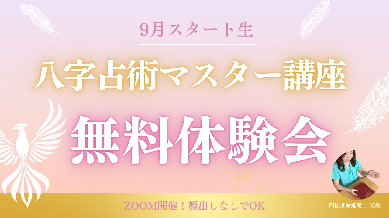 現在9月スタート生募集中の、八字占術マスター講座「無料体験会」を実施します。
